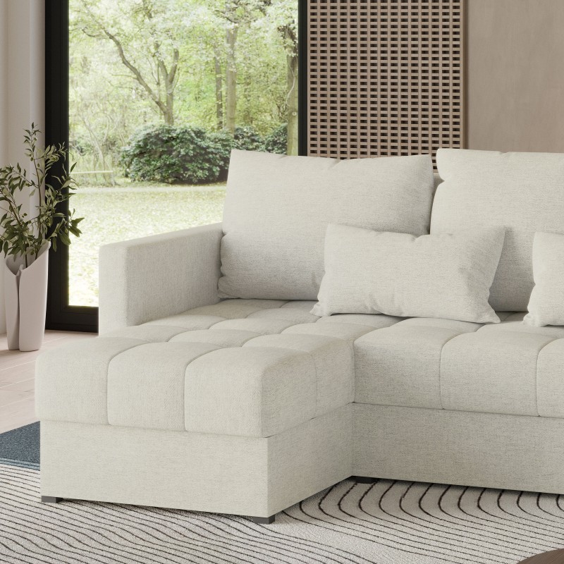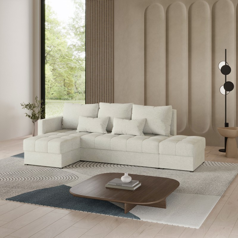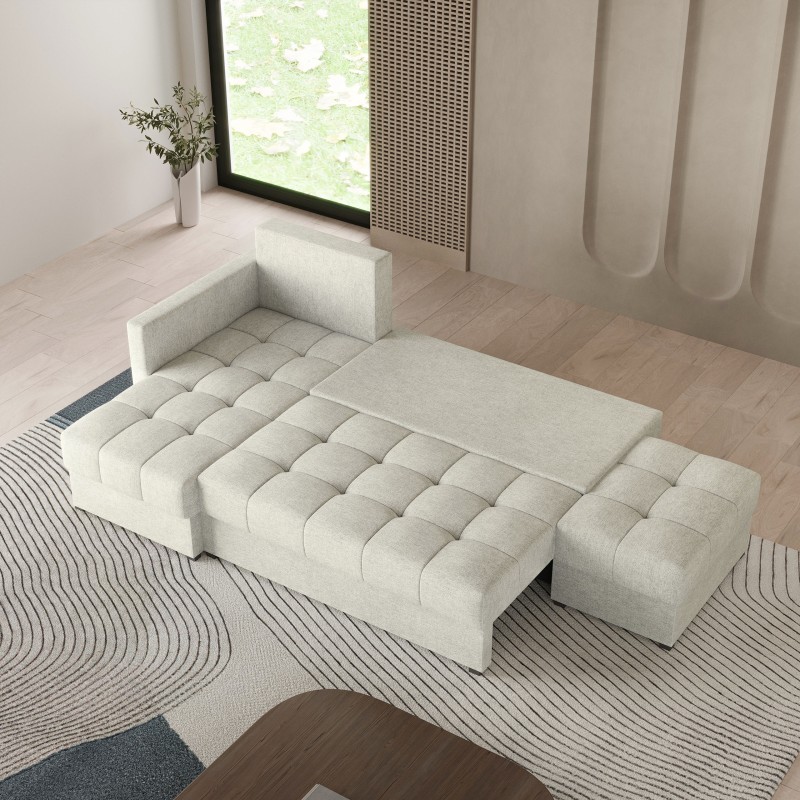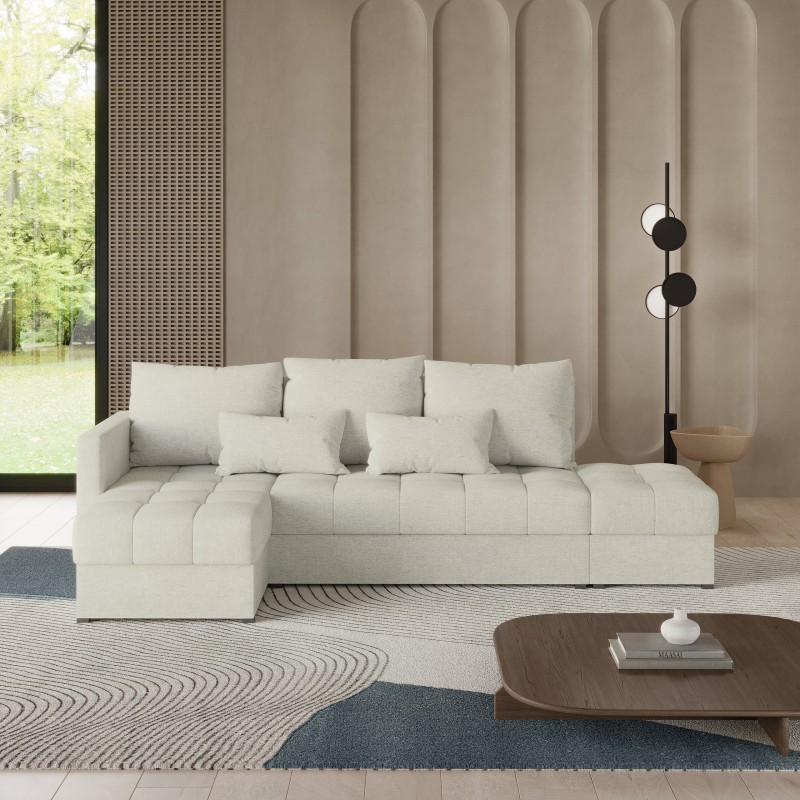 Masseno Narożnik LUMARI z funkcją spania i pojemnikiem na pościel Narozniki L, Rozkładana sofa - Kremowy, NEVE 02