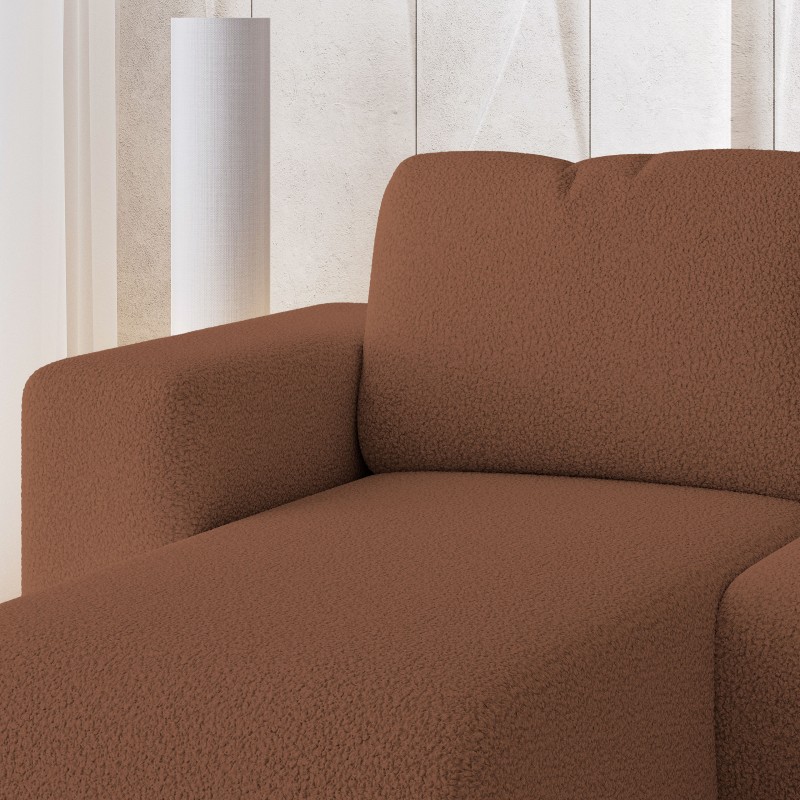 RINOVA jest meblem uniwersalnym – podczas montażu możesz wybrać, czy chcesz mieć stronę lewą czy prawą. To ogromna zaleta, szczególnie przy zmianach aranżacyjnych, przeprowadzkach lub po prostu, gdy chcesz zmienić układ mebli w salonie. Dzięki temu zyskujesz elastyczność i swobodę w projektowaniu przestrzeni. Duże, luźne poduszki oparciowe zapewniają idealne podparcie pleców podczas długich wieczorów filmowych, a szerokie podłokietniki to doskonałe miejsce na popołudniową kawę czy książkę. RINOVA rozkłada się z łatwością, oferując funkcję spania – idealną na niespodziewanego gościa, weekendowy maraton seriali czy wspólne poranki z dziećmi. Powierzchnia do spania jest równa i komfortowa, co sprawia, że wypoczynek jest naprawdę regenerujący. To mebel, który możesz postawić w dowolnym miejscu pokoju – tył wykończony tą samą tkaniną prezentuje się elegancko z każdej strony.