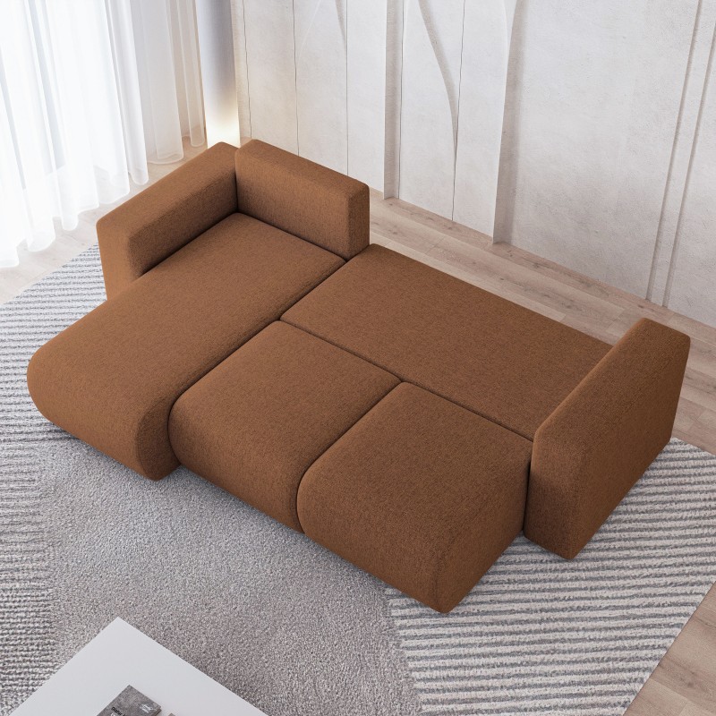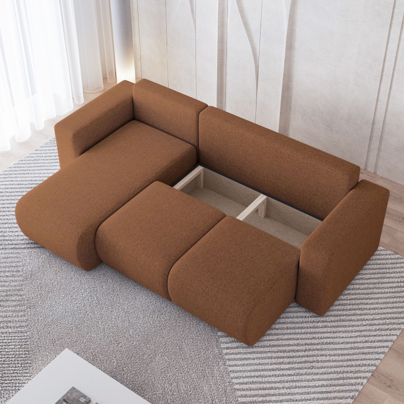 Masseno Narożnik RINOVA z funkcją spania i pojemnikiem na pościel Narozniki L, Rozkładana sofa - Miedziany, NEVE 52