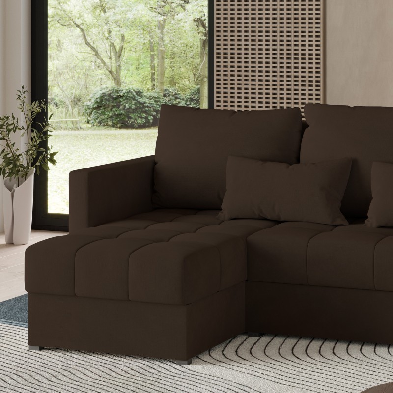 Masseno Narożnik LUMARI z funkcją spania i pojemnikiem na pościel Narozniki L, Rozkładana sofa - Brązowy, KRONOS 06