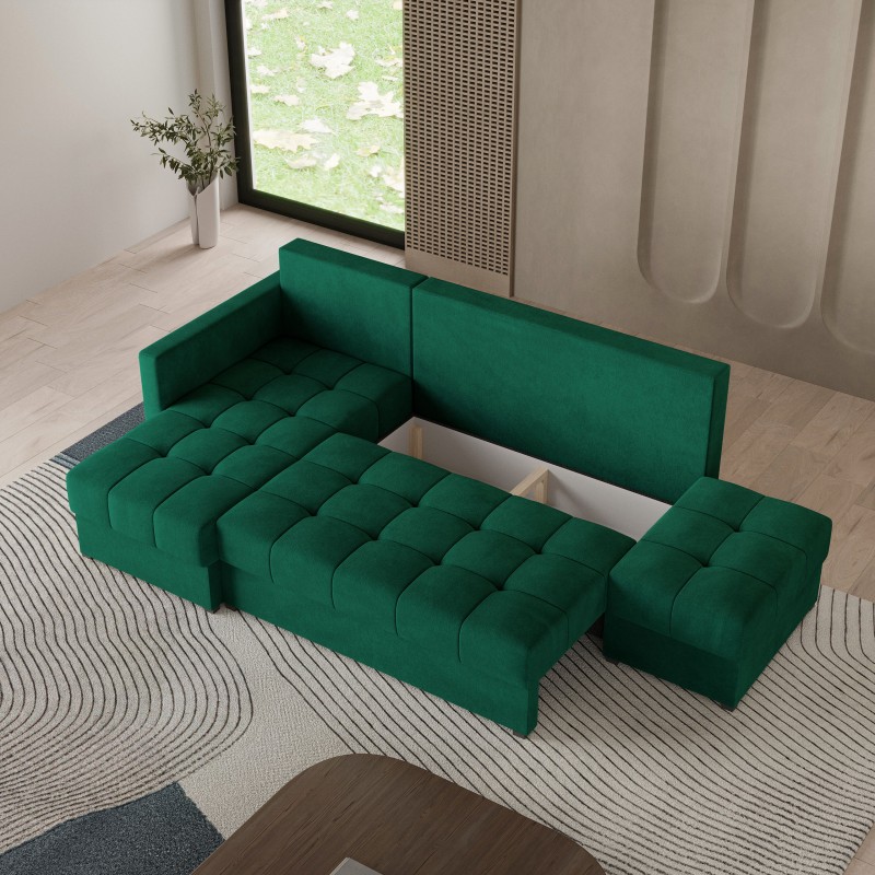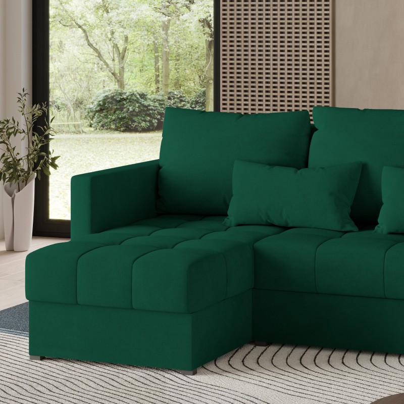 Masseno Narożnik LUMARI z funkcją spania i pojemnikiem na pościel Narozniki L, Rozkładana sofa - Butelkowa zieleń, KRONOS 19