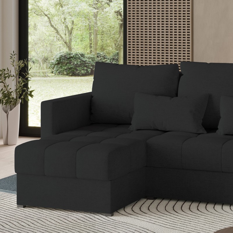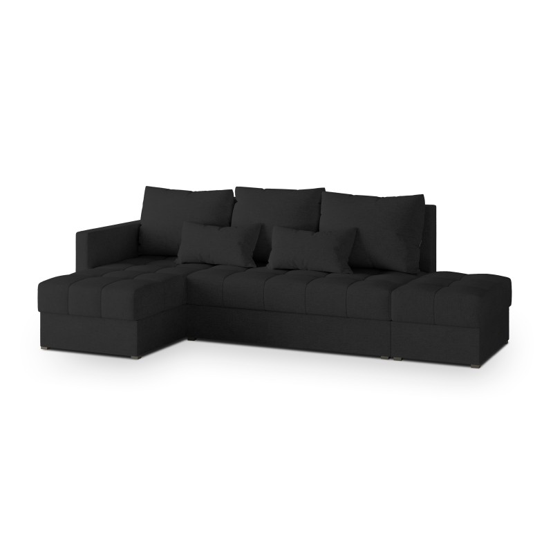 Masseno Narożnik LUMARI z funkcją spania i pojemnikiem na pościel Narozniki L, Rozkładana sofa - Czarny, NEVE 100