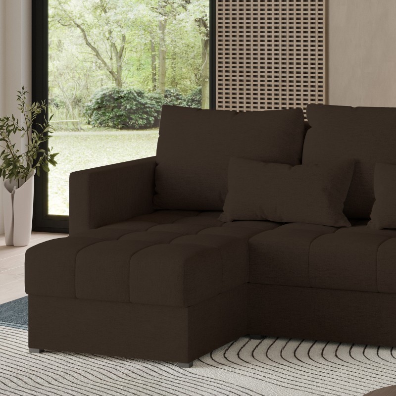 Masseno Narożnik LUMARI z funkcją spania i pojemnikiem na pościel Narozniki L, Rozkładana sofa - Brązowy, NEVE 28