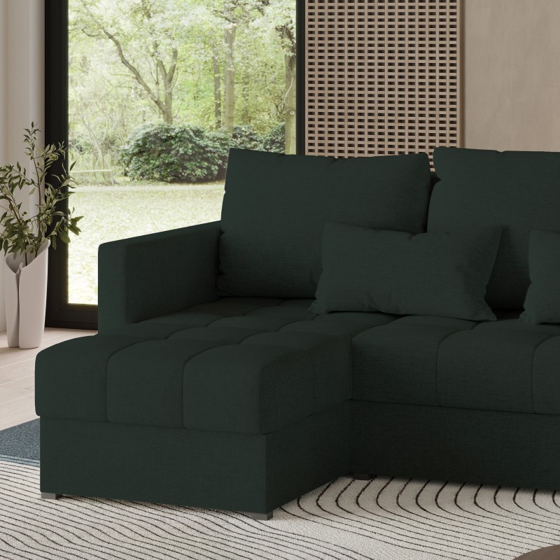 Masseno Narożnik LUMARI z funkcją spania i pojemnikiem na pościel Narozniki L, Rozkładana sofa - Zielony, NEVE 37
