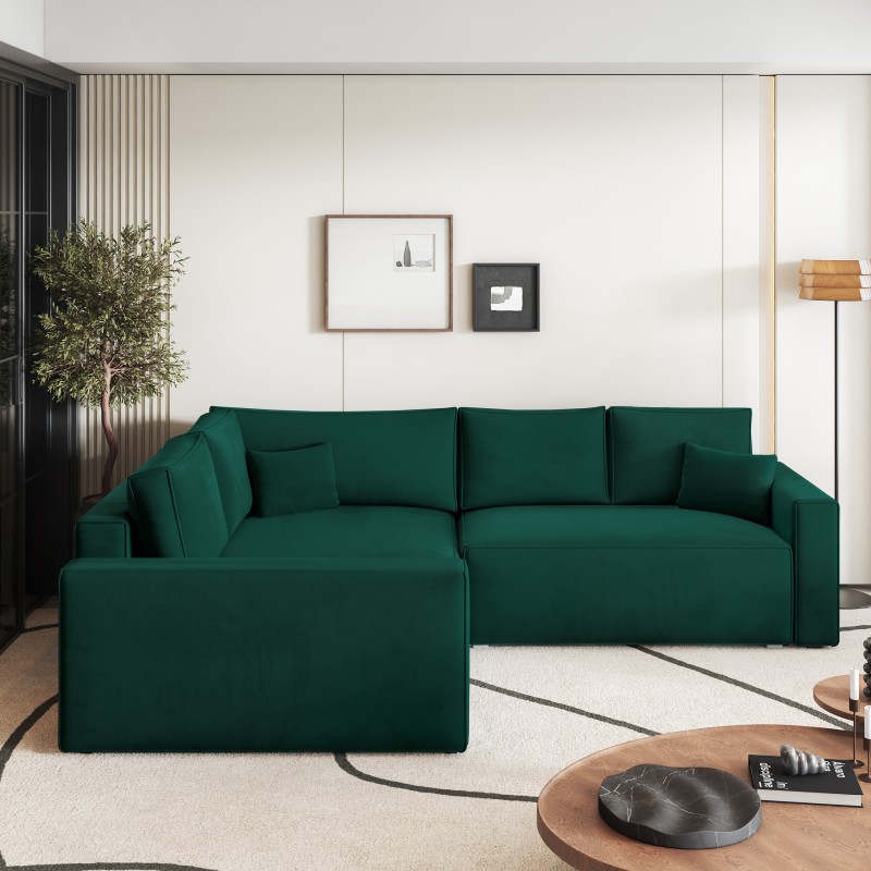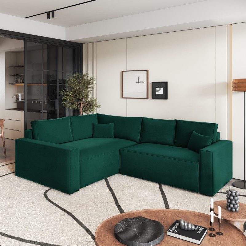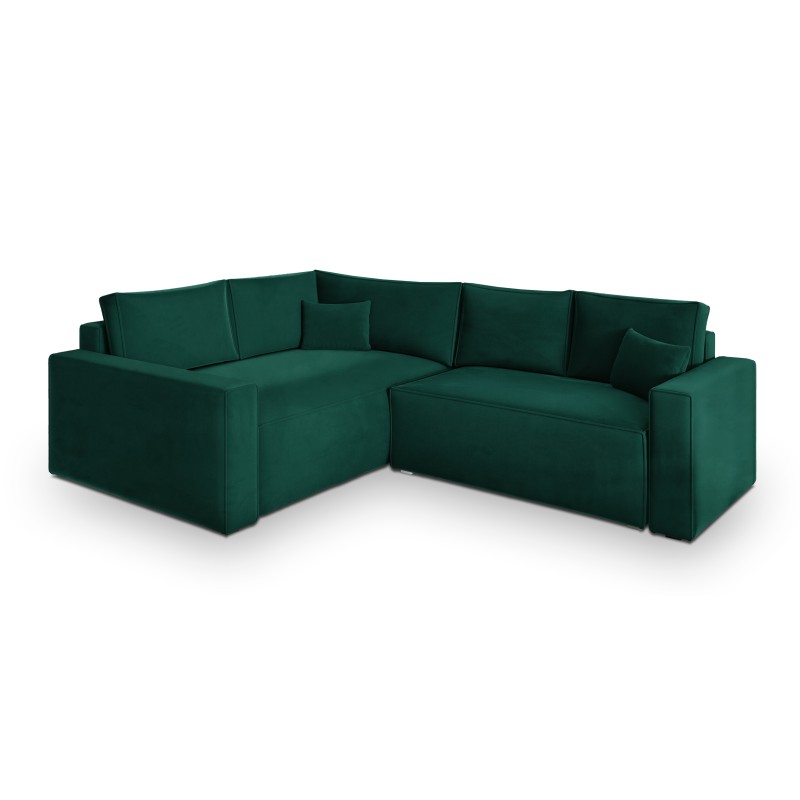 Masseno Narożnik ERONIS z funkcją spania i pojemnikiem na pościel Narozniki L, Rozkładana sofa - Butelkowa zieleń, MONOLITH 37
