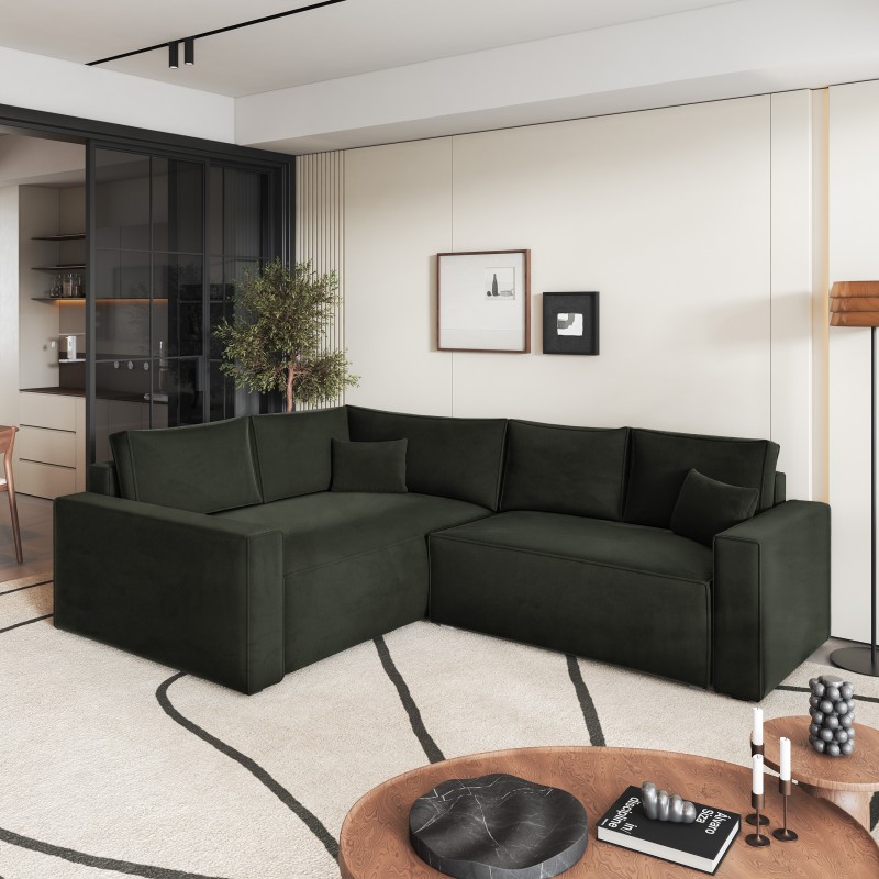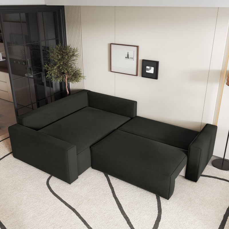 Masseno Narożnik ERONIS z funkcją spania i pojemnikiem na pościel Narozniki L, Rozkładana sofa - Czarny, MONOLITH 95