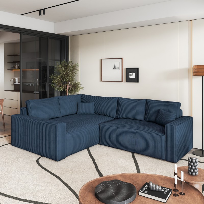 Masseno Narożnik ERONIS z funkcją spania i pojemnikiem na pościel Narozniki L, Rozkładana sofa - Niebieski, POSO 05