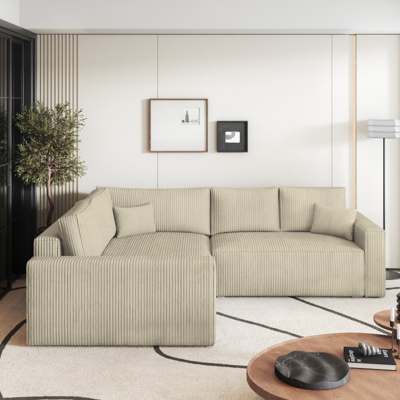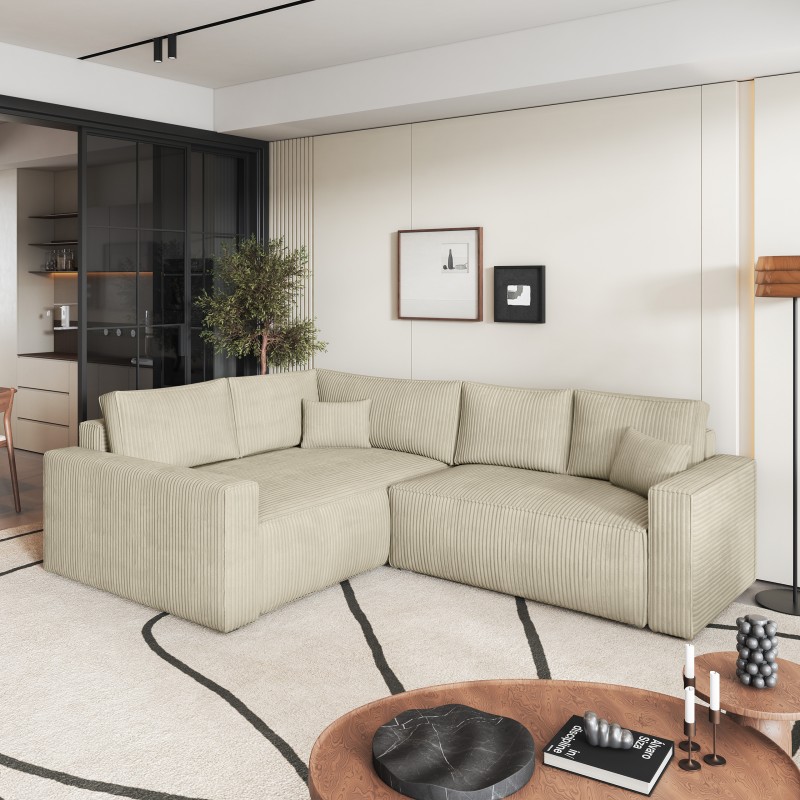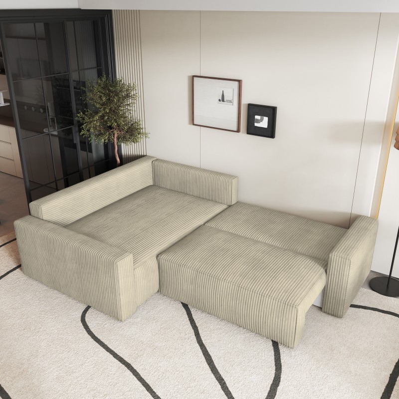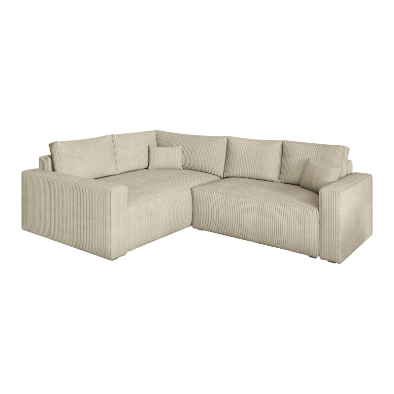 Masseno Narożnik ERONIS z funkcją spania i pojemnikiem na pościel Narozniki L, Rozkładana sofa - Kremowy, POSO 100