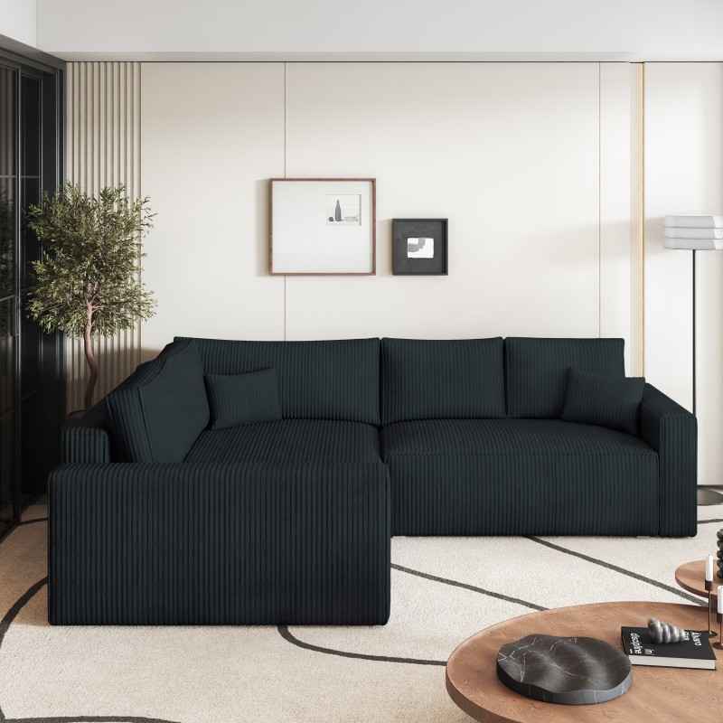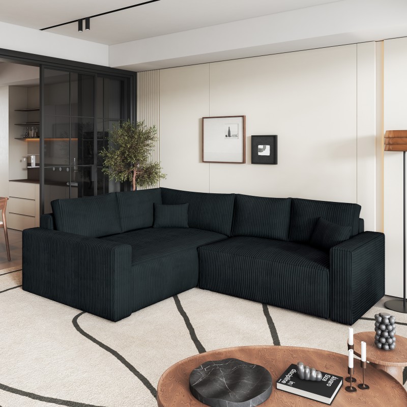 Masseno Narożnik ERONIS z funkcją spania i pojemnikiem na pościel Narozniki L, Rozkładana sofa - Czarny, POSO 135