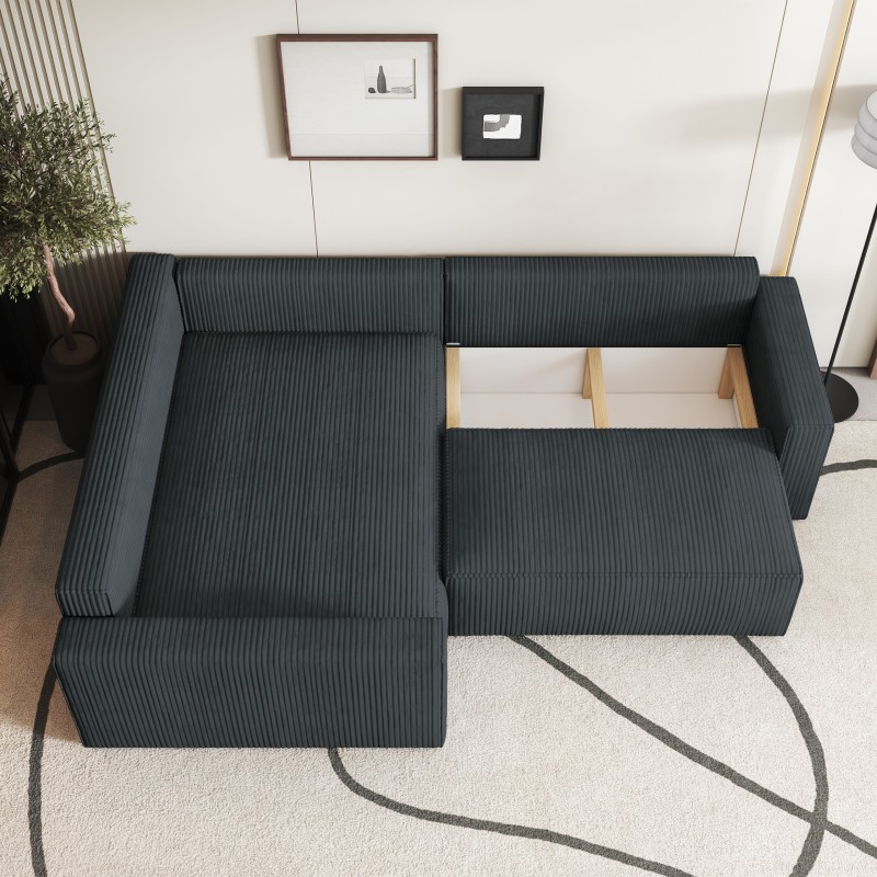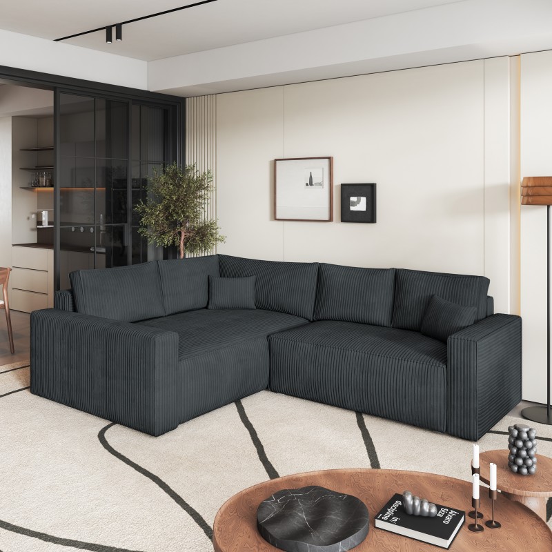 Masseno Narożnik ERONIS z funkcją spania i pojemnikiem na pościel Narozniki L, Rozkładana sofa - Grafitowy, POSO 34