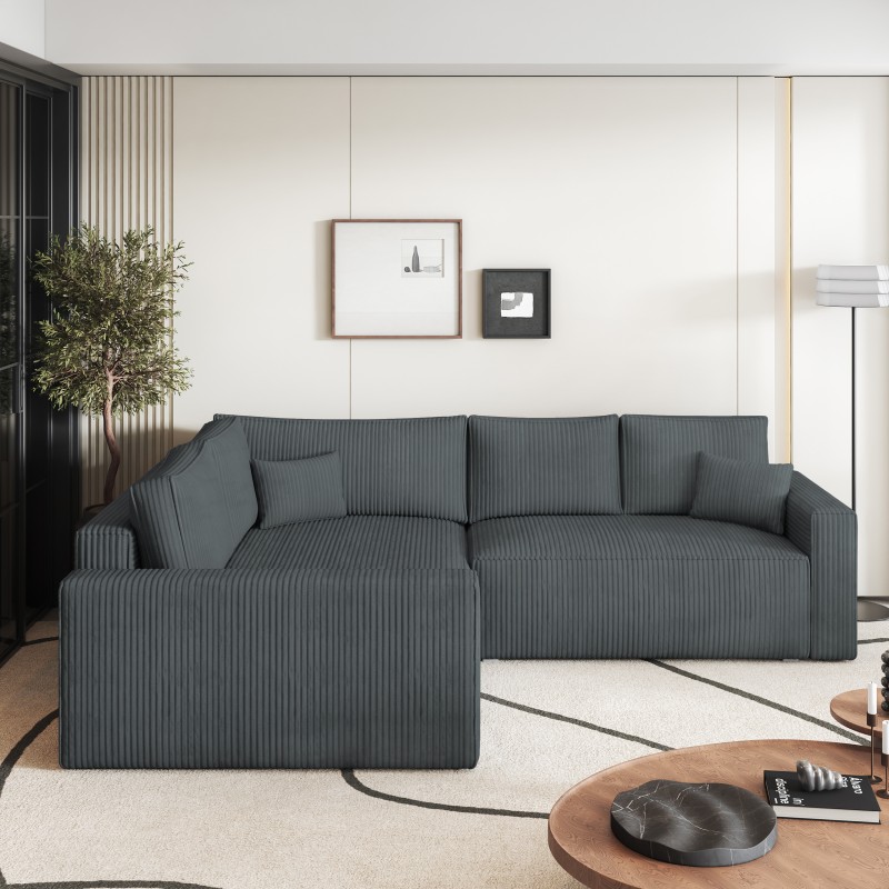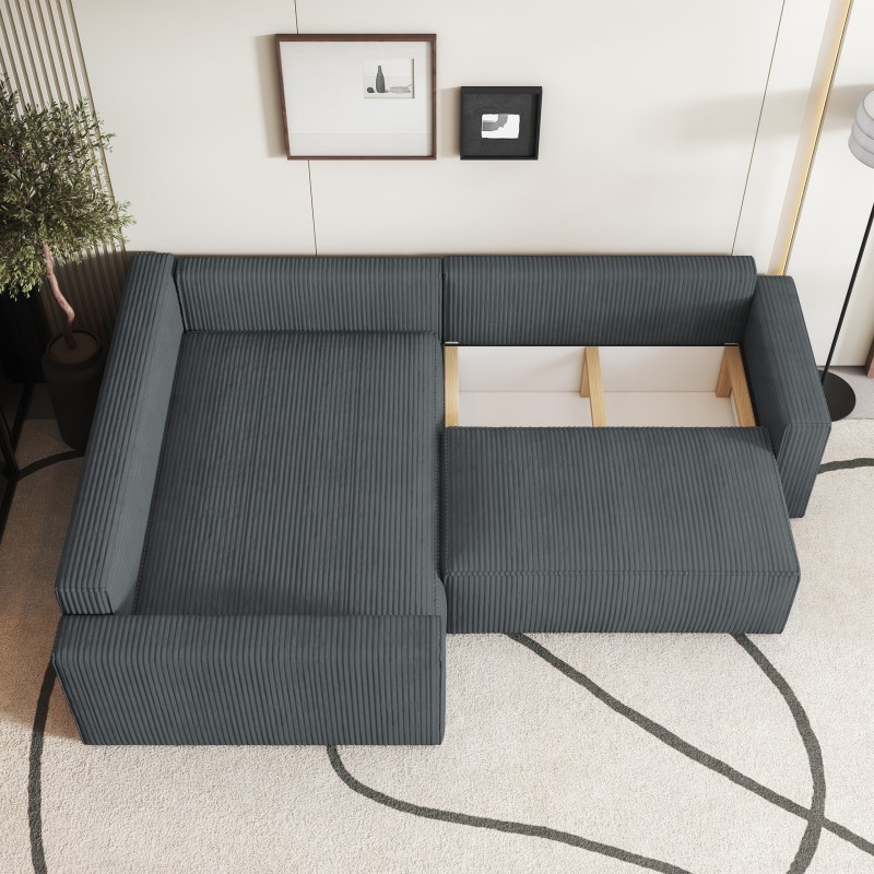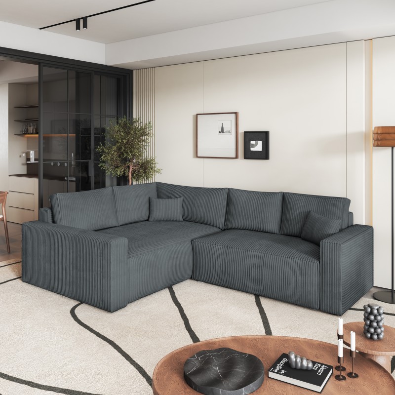 Masseno Narożnik ERONIS z funkcją spania i pojemnikiem na pościel Narozniki L, Rozkładana sofa - Szary, POSO 60