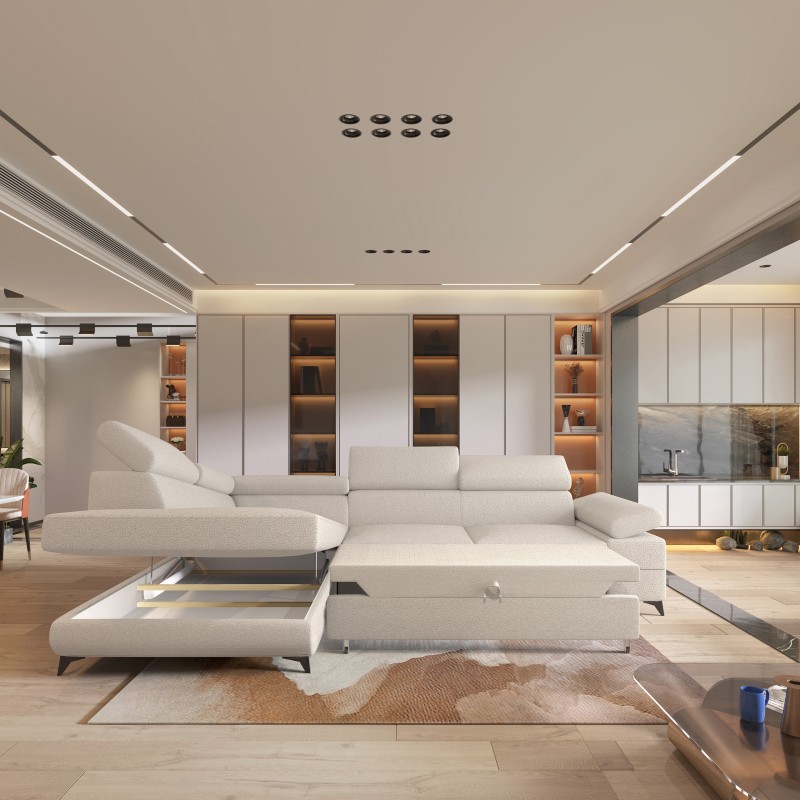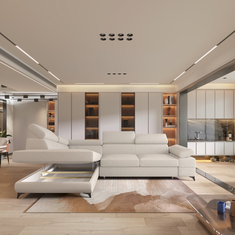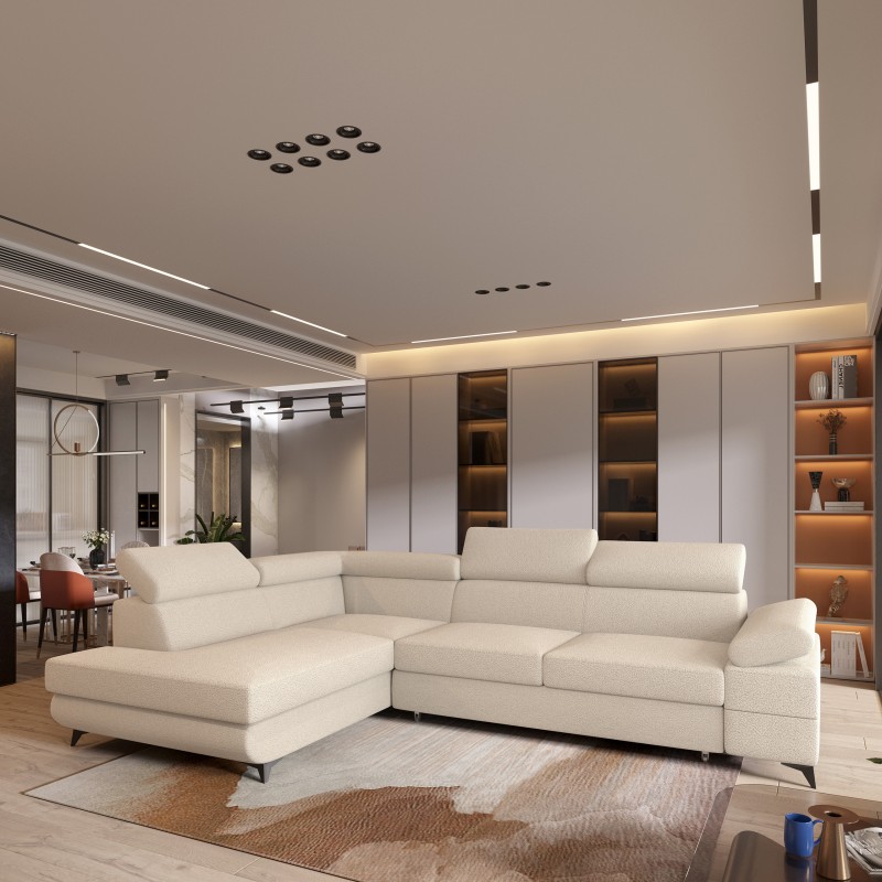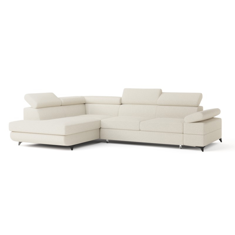 Masseno Narożnik FAVIEN z funkcją spania i pojemnikiem na pościel Narozniki L, Rozkładana sofa - Kremowy, QUELLE 02