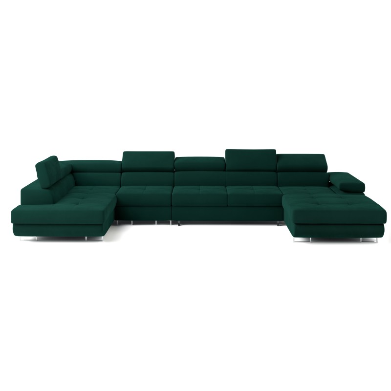 Masseno Narożnik VELORA z funkcją spania i pojemnikiem na pościel Narozniki U, Rozkładana sofa - Butelkowa zieleń, MONOLITH 37