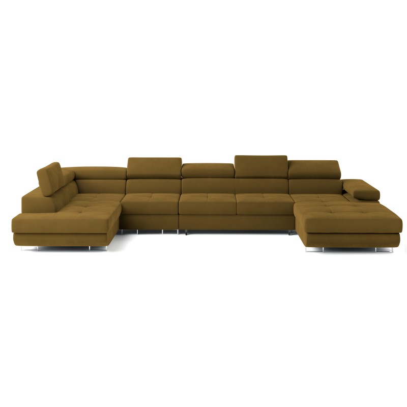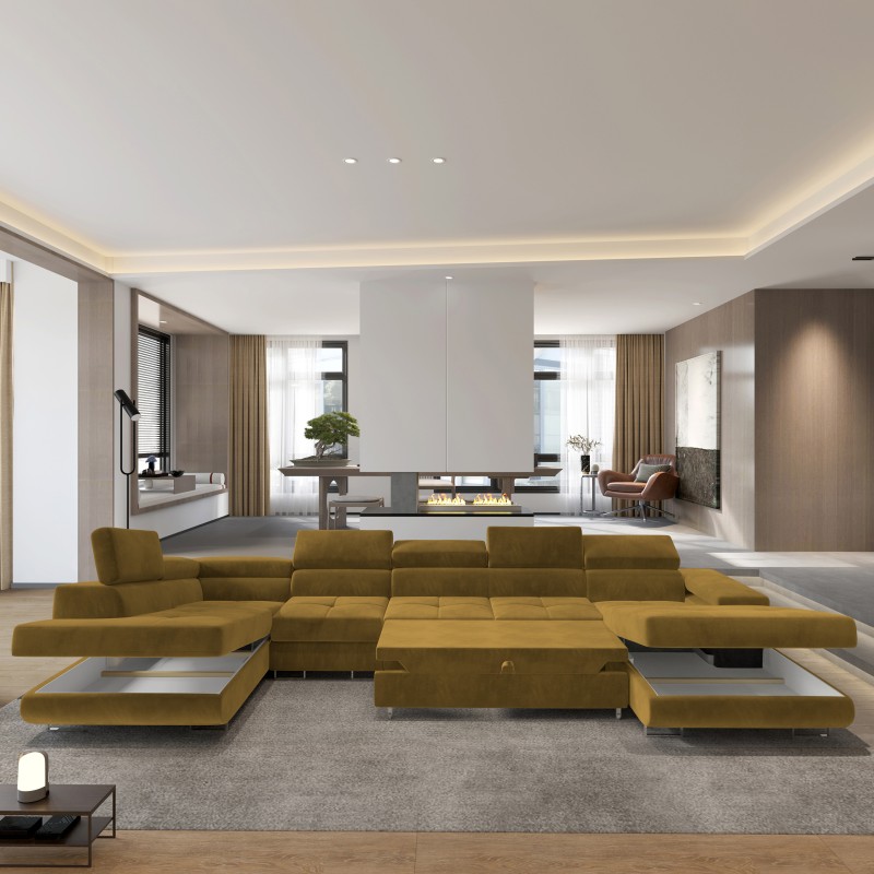 Masseno Narożnik VELORA z funkcją spania i pojemnikiem na pościel Narozniki U, Rozkładana sofa - Żółty, MONOLITH 48
