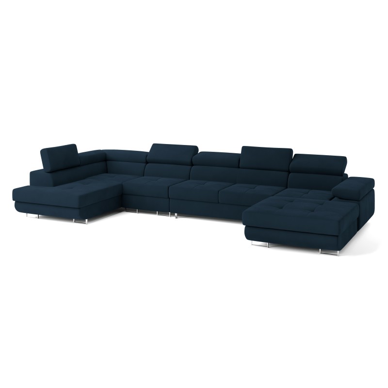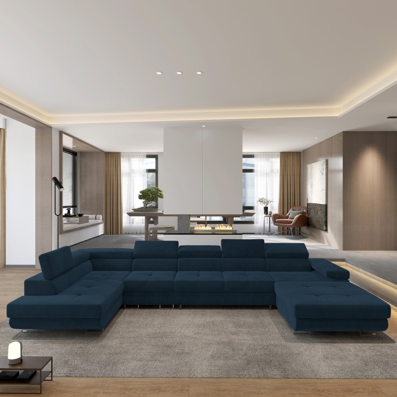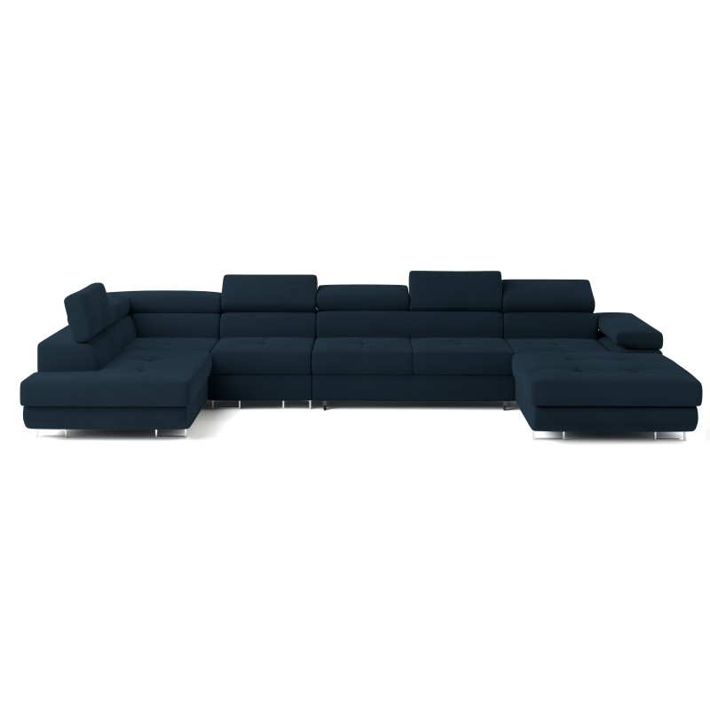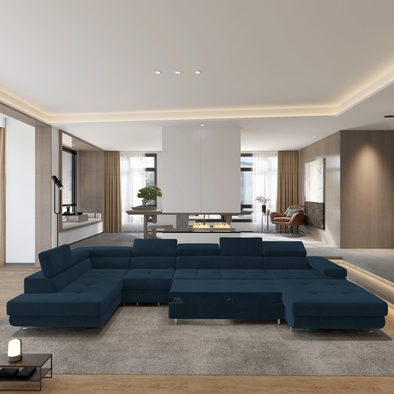 Masseno Narożnik VELORA z funkcją spania i pojemnikiem na pościel Narozniki U, Rozkładana sofa - Niebieski, MONOLITH 77