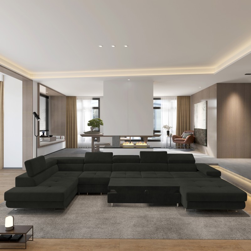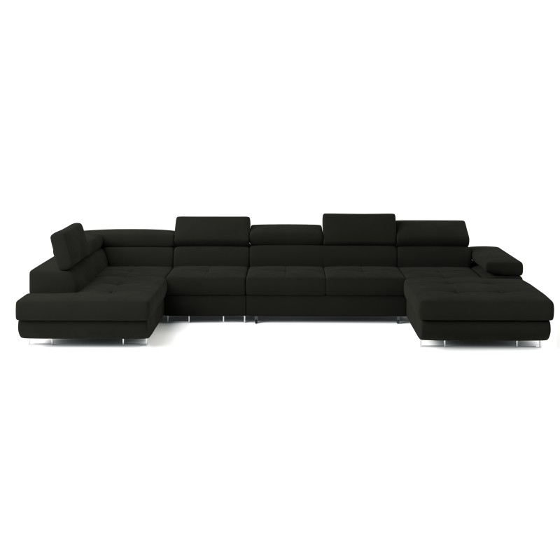 Masseno Narożnik VELORA z funkcją spania i pojemnikiem na pościel Narozniki U, Rozkładana sofa - Czarny, MONOLITH 95