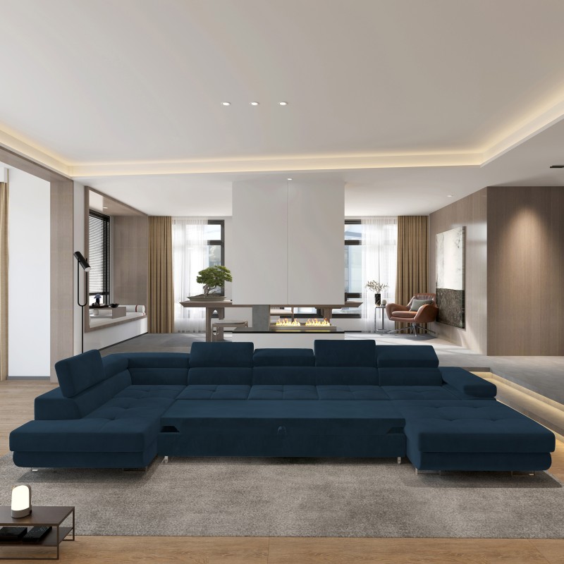 Masseno Narożnik TORIVA z funkcją spania i pojemnikiem na pościel Narozniki U, Rozkładana sofa - Niebieski, MONOLITH 77