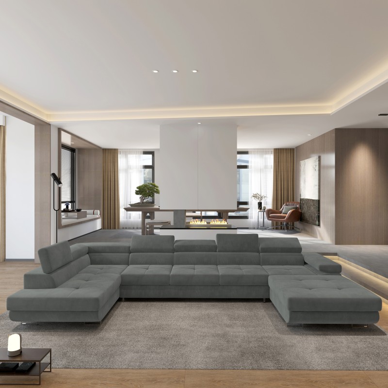 Masseno Narożnik TORIVA z funkcją spania i pojemnikiem na pościel Narozniki U, Rozkładana sofa - Szary, MONOLITH 85