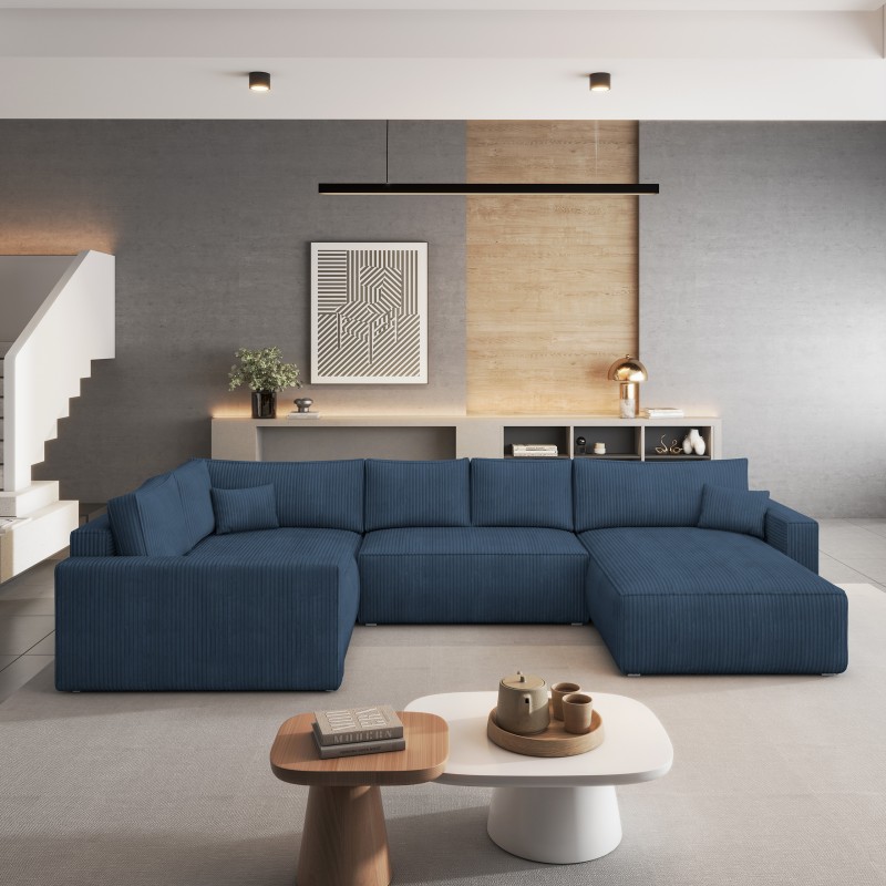 Masseno Narożnik VELAMI z funkcją spania i pojemnikiem na pościel Narozniki U, Rozkładana sofa - Niebieski, POSO 05