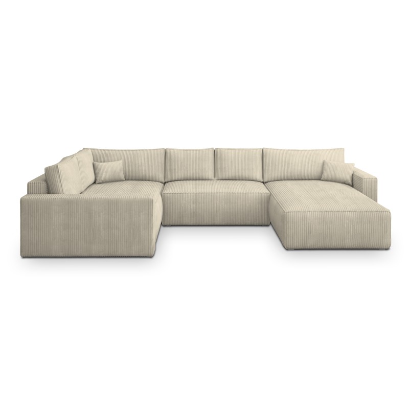 Masseno Narożnik VELAMI z funkcją spania i pojemnikiem na pościel Narozniki U, Rozkładana sofa - Kremowy, POSO 100