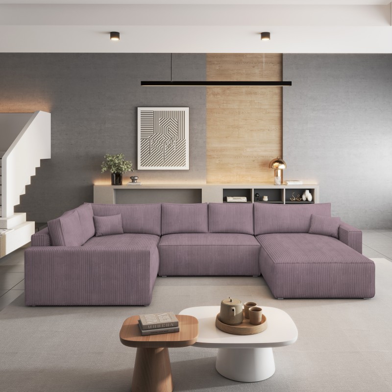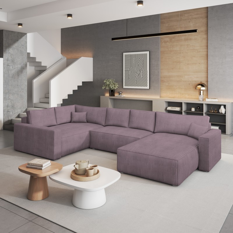 Masseno Narożnik VELAMI z funkcją spania i pojemnikiem na pościel Narozniki U, Rozkładana sofa - Wrzosowy, POSO 130