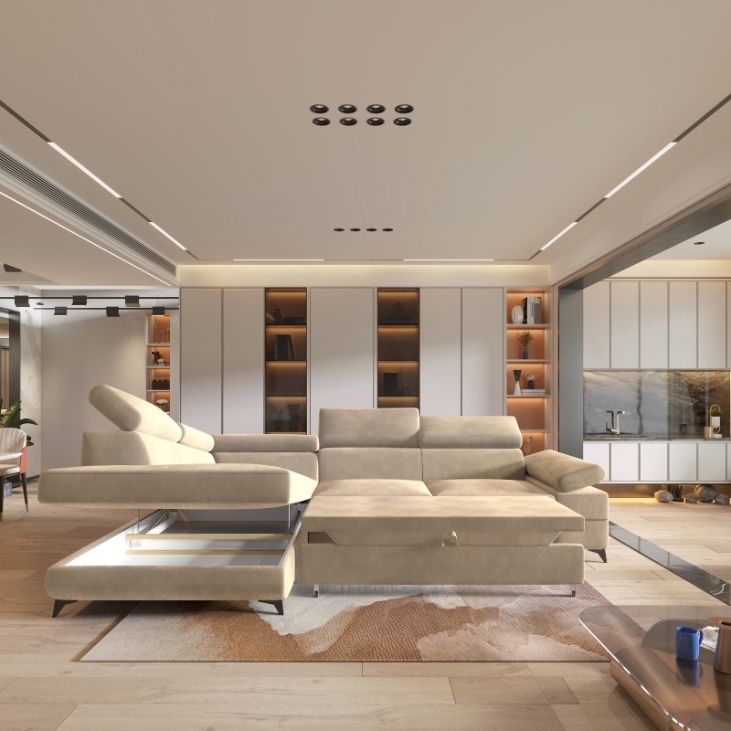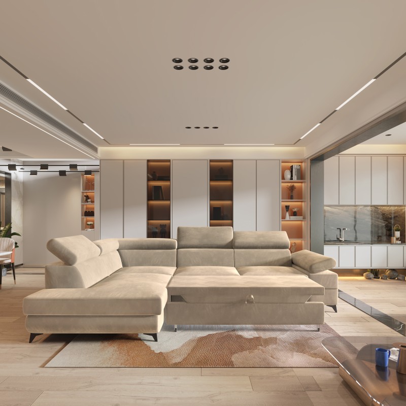 FAVIEN to narożnik dla tych, którzy cenią design, funkcjonalność i trwałość. Idealnie odnajdzie się w nowoczesnym wnętrzu, łącząc miękką przytulność z miejską klasą. Wersja lewostronna lub prawostronna? Ty decydujesz, jak dopasować go do swojej przestrzeni.