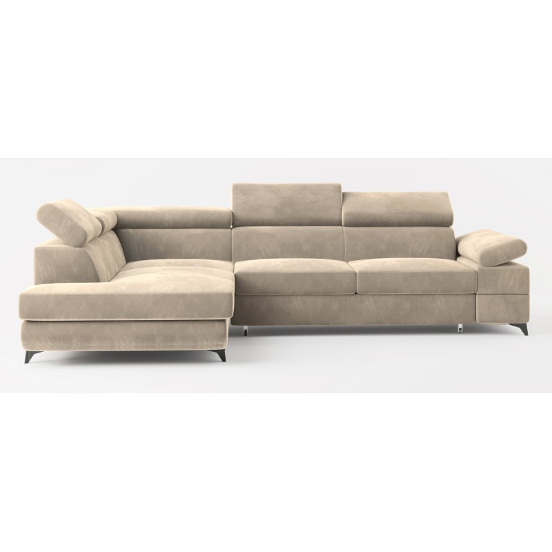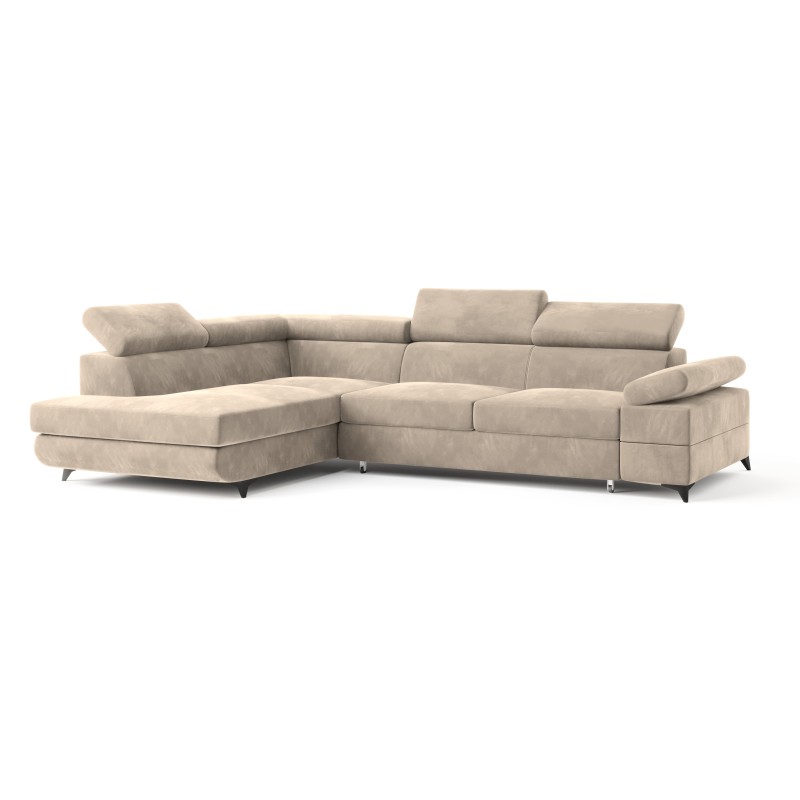 Masseno Narożnik FAVIEN z funkcją spania i pojemnikiem na pościel Narozniki L, Rozkładana sofa - Kremowy, MONOLITH 04