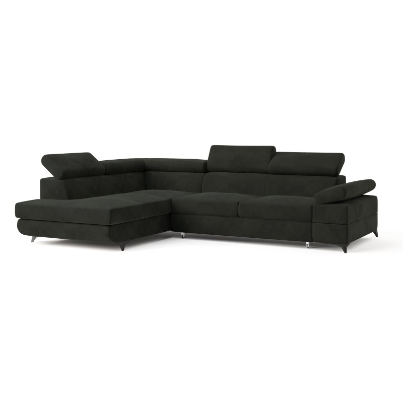 Masseno Narożnik FAVIEN z funkcją spania i pojemnikiem na pościel Narozniki L, Rozkładana sofa - Czarny, MONOLITH 95