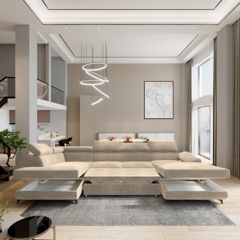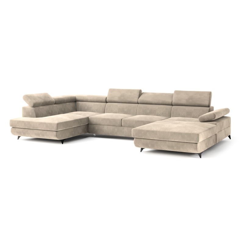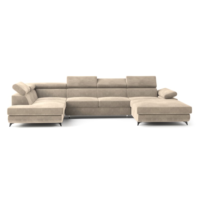 Masseno Narożnik RUBANO z funkcją spania i pojemnikiem na pościel Narozniki U, Rozkładana sofa - Kremowy, MONOLITH 04