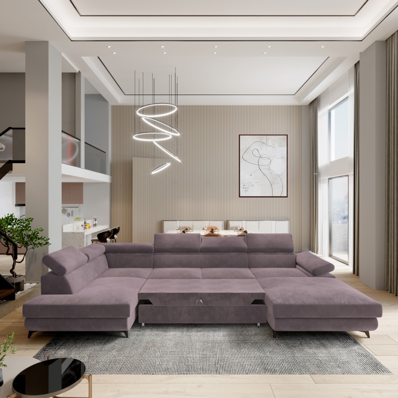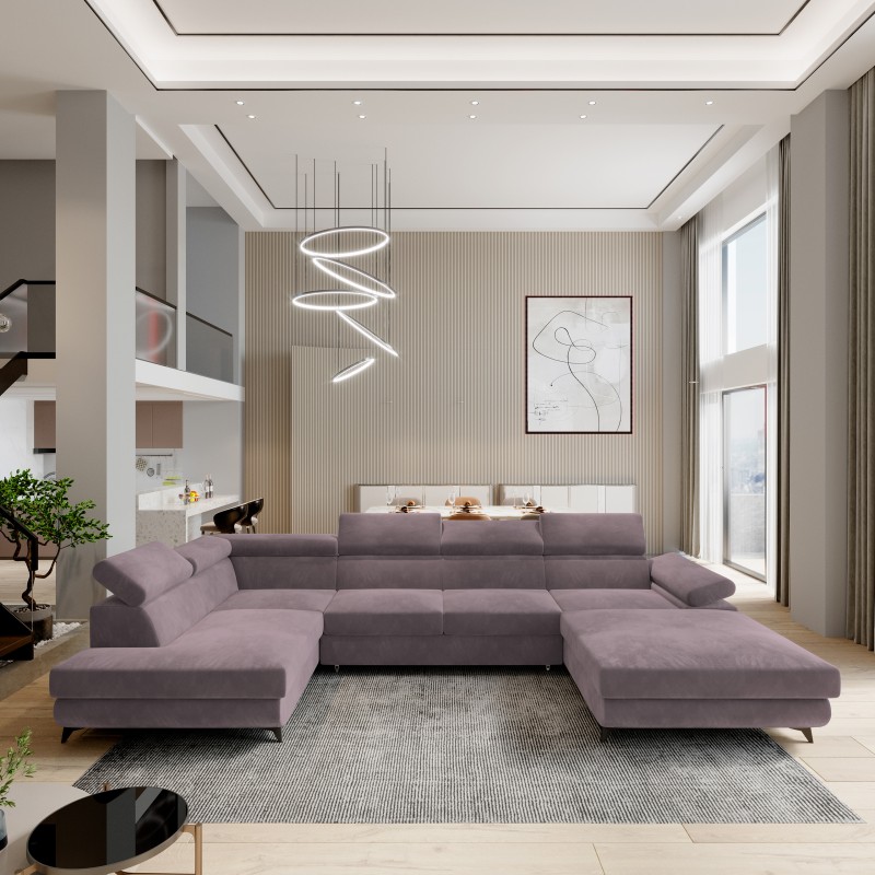 Masseno Narożnik RUBANO z funkcją spania i pojemnikiem na pościel Narozniki U, Rozkładana sofa - Wrzosowy, MONOLITH 62