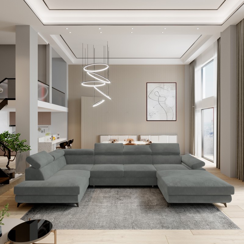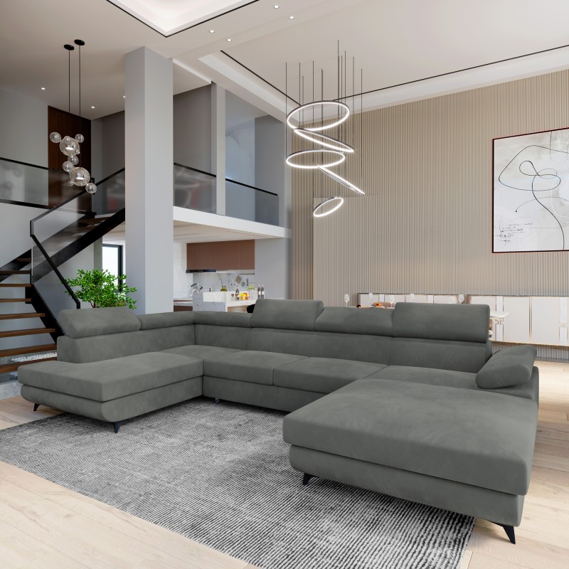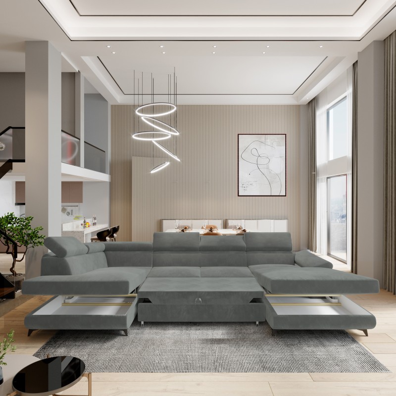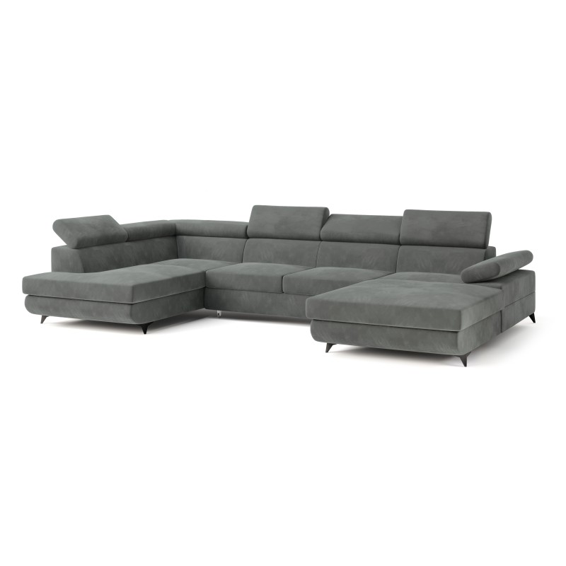 Masseno Narożnik RUBANO z funkcją spania i pojemnikiem na pościel Narozniki U, Rozkładana sofa - Szary, MONOLITH 85