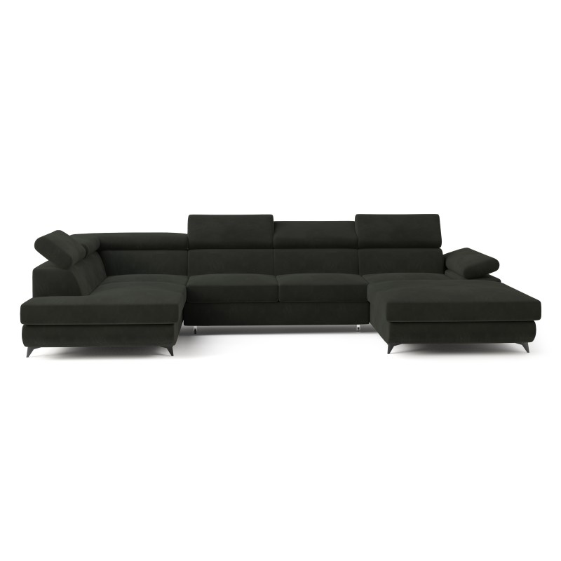 Masseno Narożnik RUBANO z funkcją spania i pojemnikiem na pościel Narozniki U, Rozkładana sofa - Czarny, MONOLITH 95