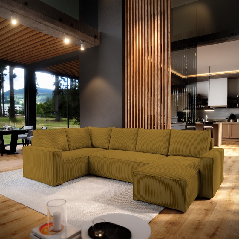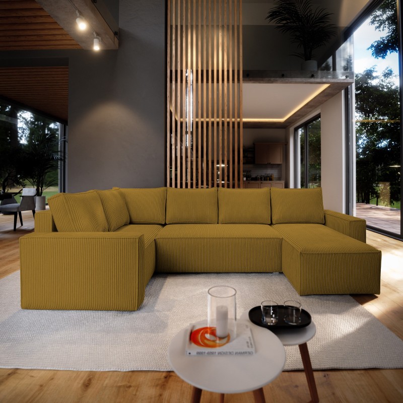 Masseno Narożnik NORENA z funkcją spania i pojemnikiem na pościel Narozniki U, Rozkładana sofa - Żółty, POSO 01