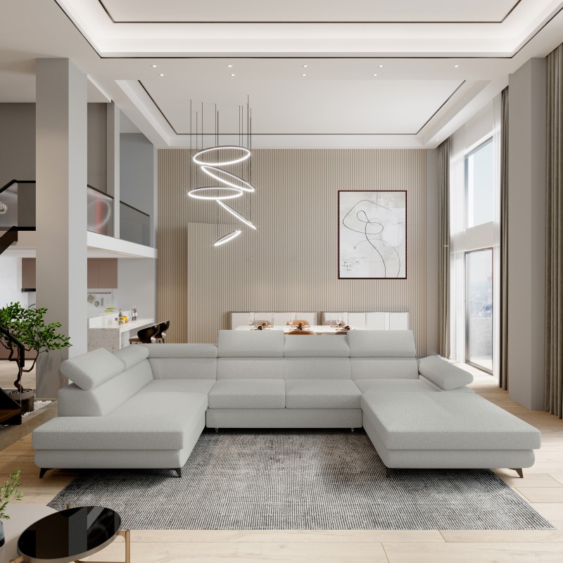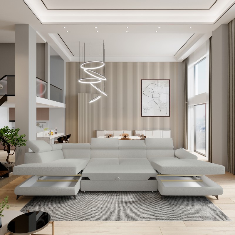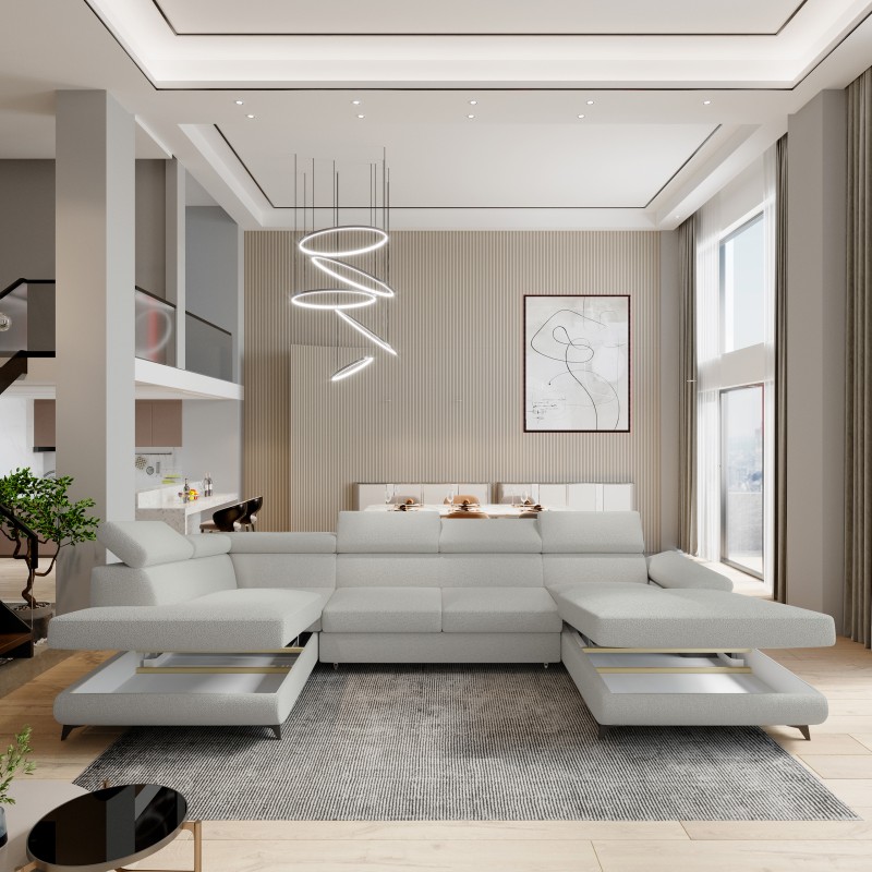 Masseno Narożnik RUBANO z funkcją spania i pojemnikiem na pościel Narozniki U, Rozkładana sofa - Jasnoszary, QUELLE 83