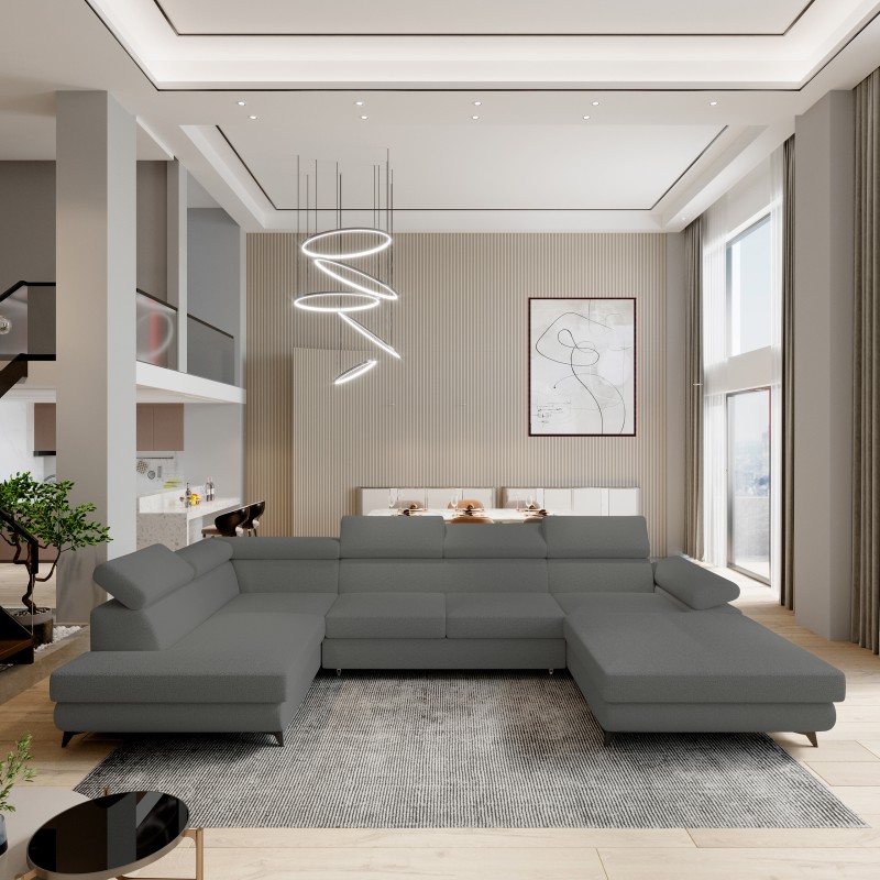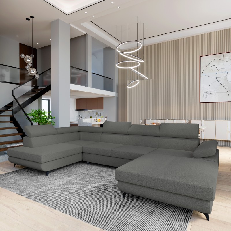 Funkcja spania wbudowana w narożnik pozwala szybko zmienić salon w komfortową przestrzeń noclegową - bez kompromisów, bez wysiłku. Dwa pojemniki na pościel to ukryty atut, który ułatwia życie: pozwalają uporządkować przestrzeń, jednocześnie pozostając całkowicie niewidoczne. Niezależnie od tego, czy urządzasz nowoczesny salon w apartamencie, czy szukasz stylowego mebla do przestronnej strefy dziennej, RUBANO daje Ci pełną elastyczność – dostępny jest w wersji prawo- i lewostronnej. Regulowane zagłówki i podłokietnik umożliwiają personalizację pozycji, zwiększając wygodę w każdej sytuacji – czy to relaks z książką, czy filmowy wieczór. RUBANO to narożnik, który staje się integralną częścią codzienności – subtelnie, ale zdecydowanie.
