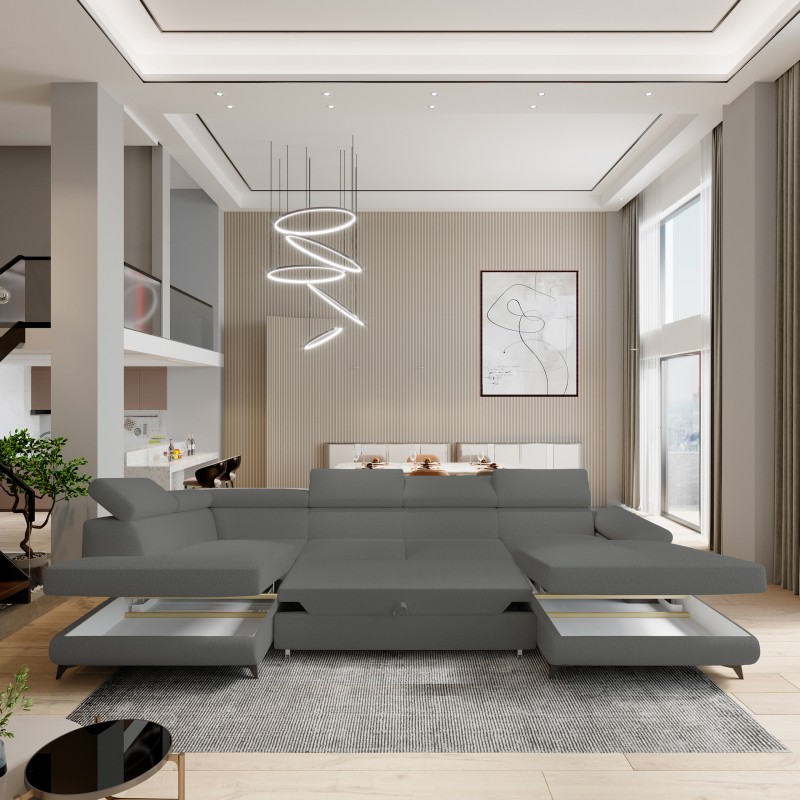 Masseno Narożnik RUBANO z funkcją spania i pojemnikiem na pościel Narozniki U, Rozkładana sofa - Szary, QUELLE 92
