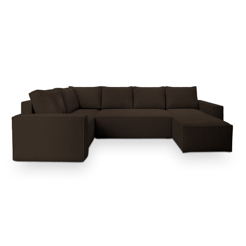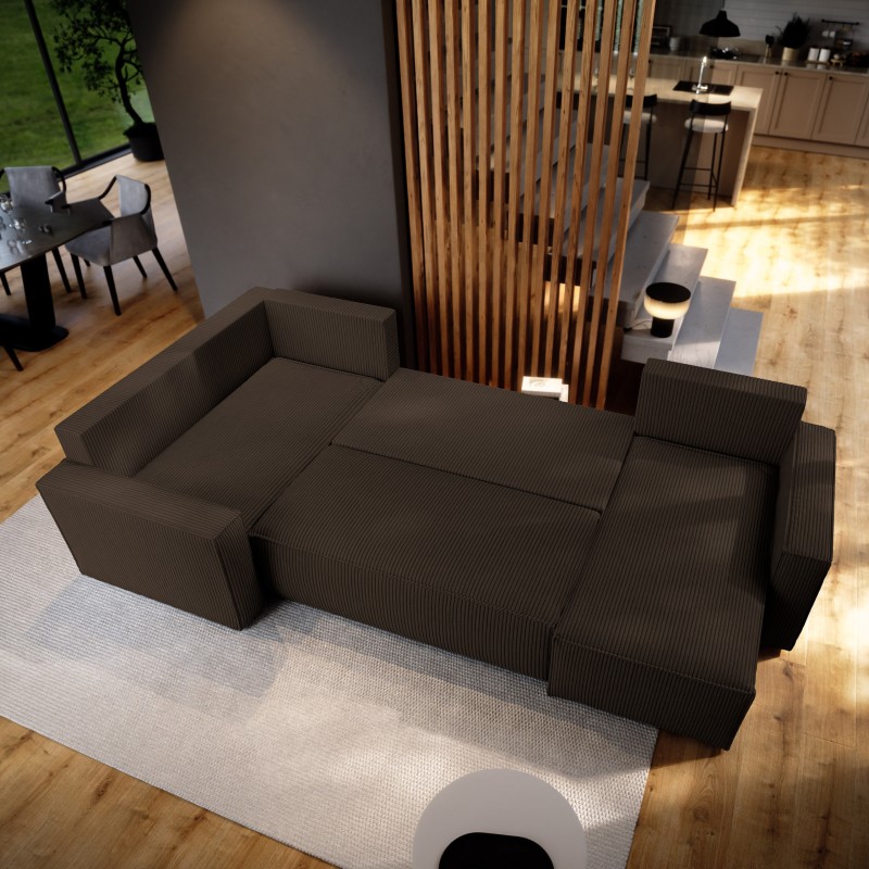 Masseno Narożnik NORENA z funkcją spania i pojemnikiem na pościel Narozniki U, Rozkładana sofa - Brązowy, POSO 06