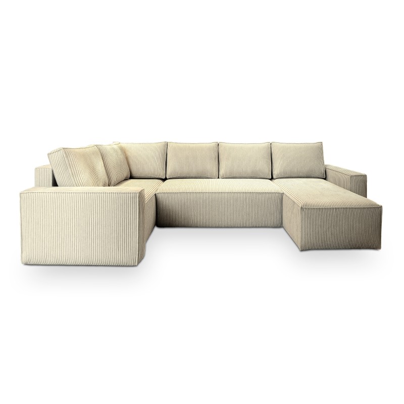 Masseno Narożnik NORENA z funkcją spania i pojemnikiem na pościel Narozniki U, Rozkładana sofa - Kremowy, POSO 100