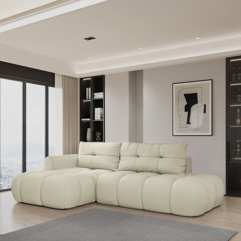 Masseno Narożnik FLUMA z funkcją spania i pojemnikiem na pościel Narozniki L, Rozkładana sofa - Kremowy, SORO 02