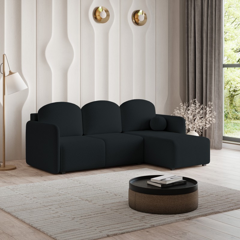 Masseno Narożnik SUVINO z funkcją spania i pojemnikiem na pościel Narozniki L, Rozkładana sofa - Czarny, QUELLE 100
