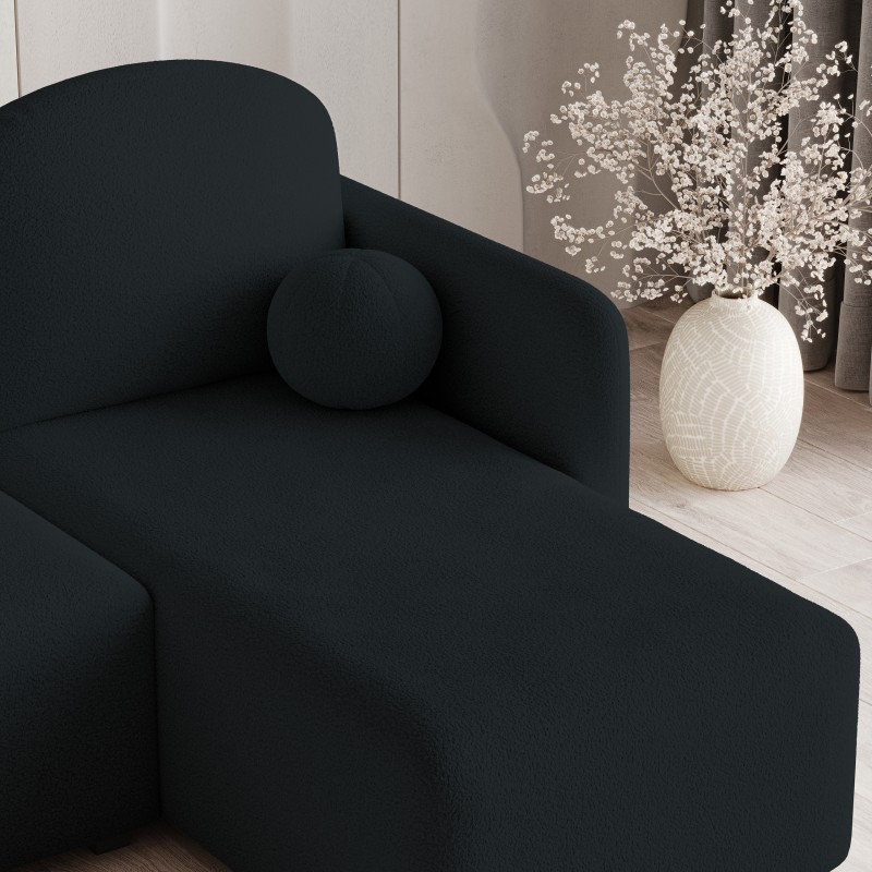 - Okrągła, miękka poduszka w kształcie kulki stanowi designerski akcent i uzupełnia nowoczesny wygląd narożnika. To nie tylko ozdoba, ale też dodatkowy element komfortu, który wyróżnia SUVINO na tle innych mebli.