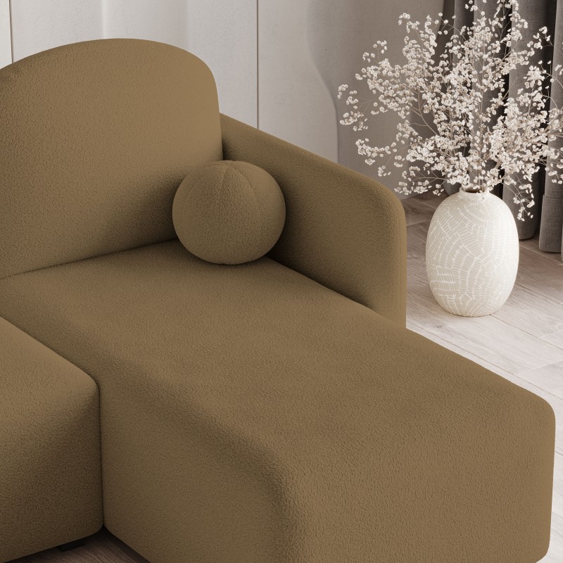- Okrągła, miękka poduszka w kształcie kulki stanowi designerski akcent i uzupełnia nowoczesny wygląd narożnika. To nie tylko ozdoba, ale też dodatkowy element komfortu, który wyróżnia SUVINO na tle innych mebli.