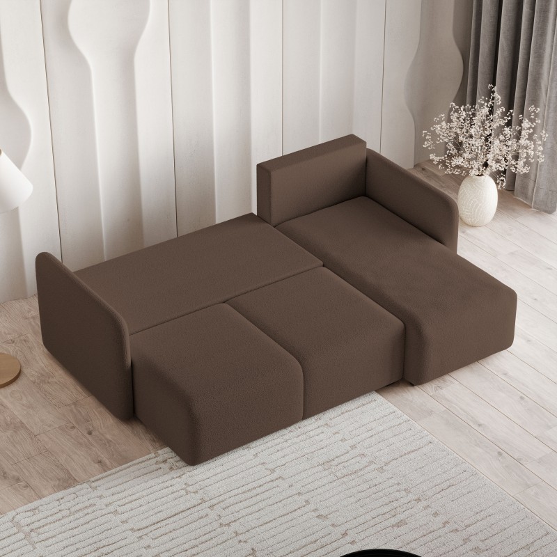 Masseno Narożnik SUVINO z funkcją spania i pojemnikiem na pościel Narozniki L, Rozkładana sofa - Brązowy, QUELLE 25