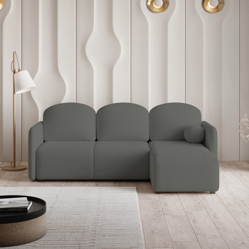 - Okrągła, miękka poduszka w kształcie kulki stanowi designerski akcent i uzupełnia nowoczesny wygląd narożnika. To nie tylko ozdoba, ale też dodatkowy element komfortu, który wyróżnia SUVINO na tle innych mebli.