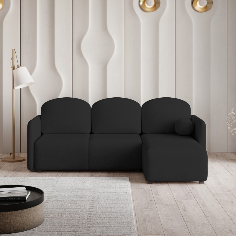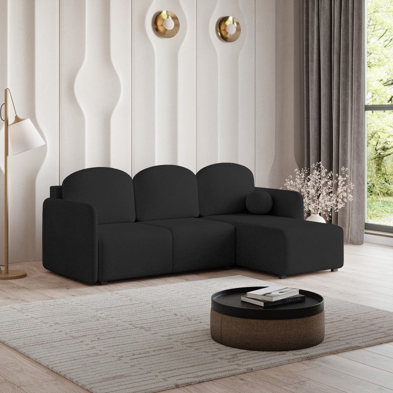 Masseno Narożnik SUVINO z funkcją spania i pojemnikiem na pościel Narozniki L, Rozkładana sofa - Czarny, NEVE 100