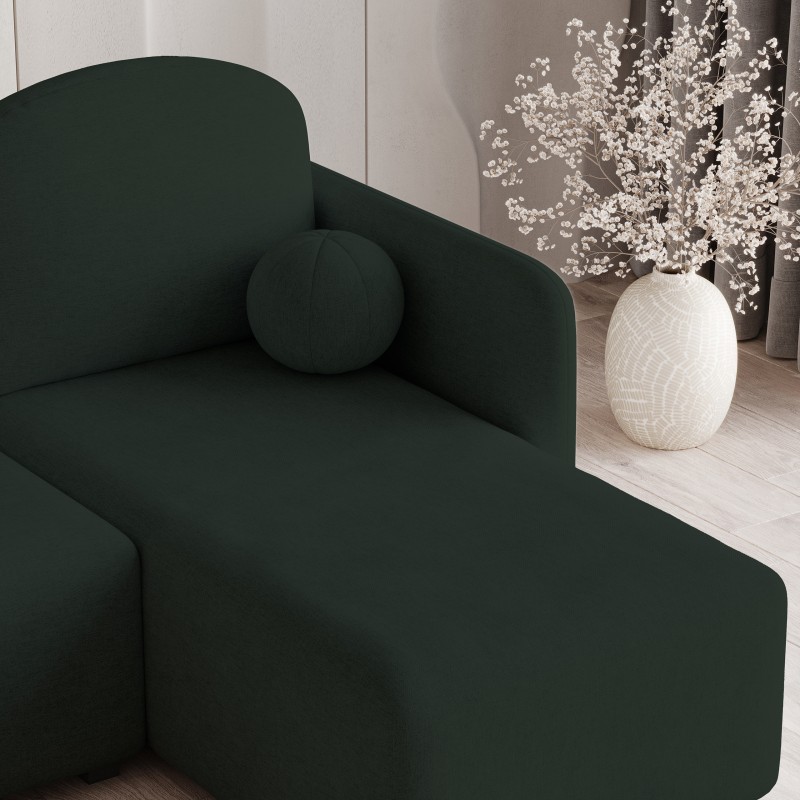 - Okrągła, miękka poduszka w kształcie kulki stanowi designerski akcent i uzupełnia nowoczesny wygląd narożnika. To nie tylko ozdoba, ale też dodatkowy element komfortu, który wyróżnia SUVINO na tle innych mebli.