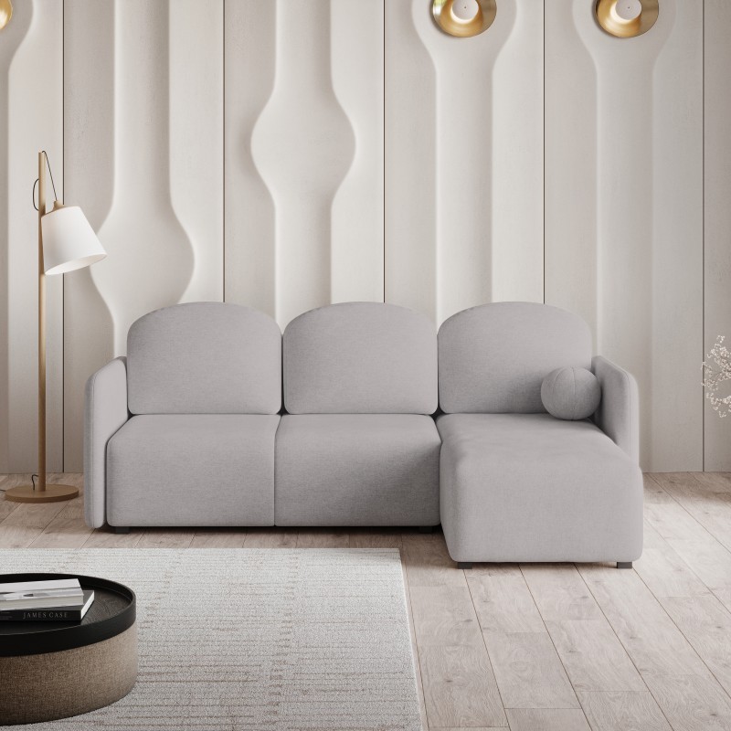 Masseno Narożnik SUVINO z funkcją spania i pojemnikiem na pościel Narozniki L, Rozkładana sofa - Jasnoszary, NEVE 83