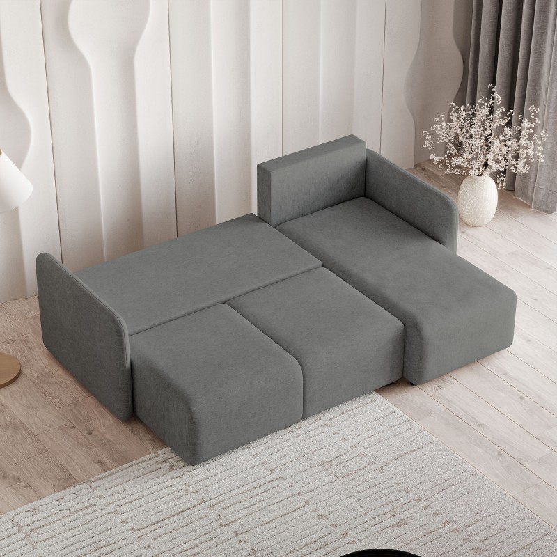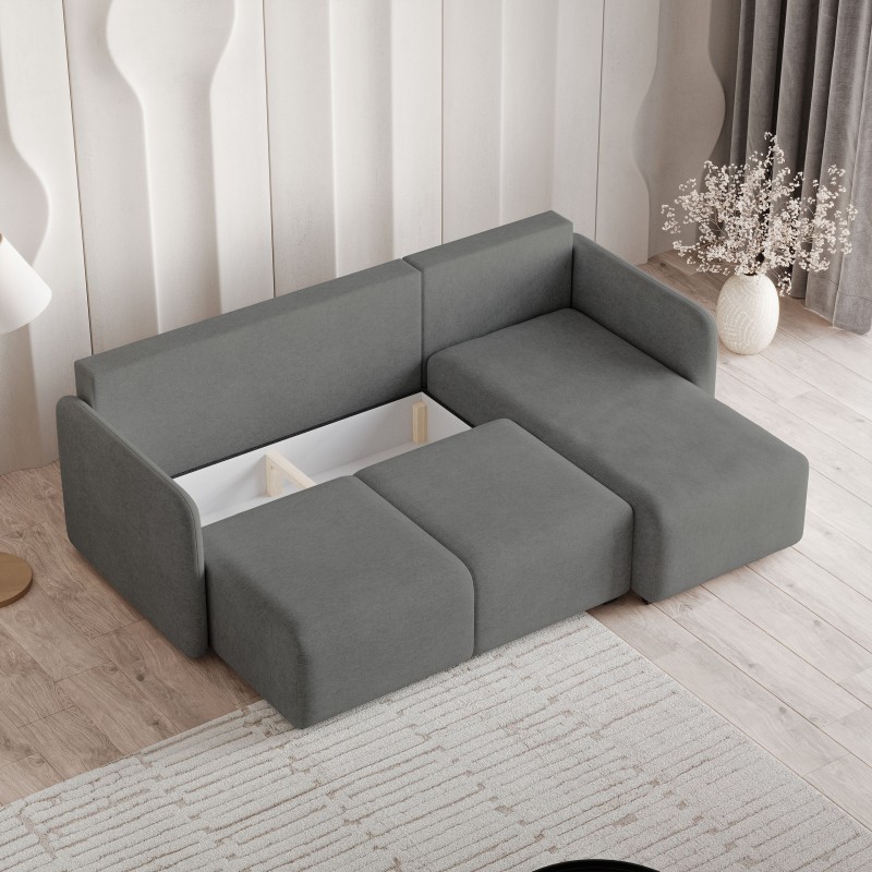 Masseno Narożnik SUVINO z funkcją spania i pojemnikiem na pościel Narozniki L, Rozkładana sofa - Szary, NEVE 90