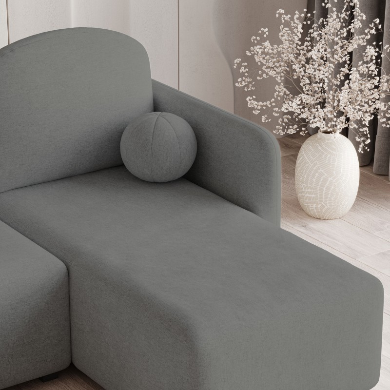 - Okrągła, miękka poduszka w kształcie kulki stanowi designerski akcent i uzupełnia nowoczesny wygląd narożnika. To nie tylko ozdoba, ale też dodatkowy element komfortu, który wyróżnia SUVINO na tle innych mebli.