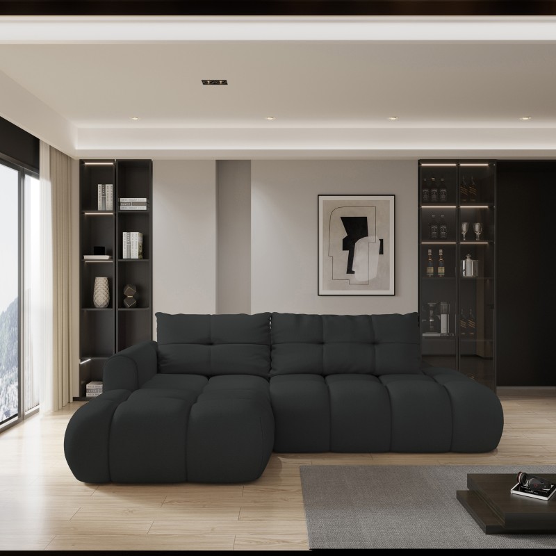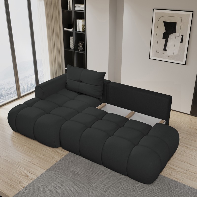 Masseno Narożnik FLUMA z funkcją spania i pojemnikiem na pościel Narozniki L, Rozkładana sofa - Czarny, SORO 100